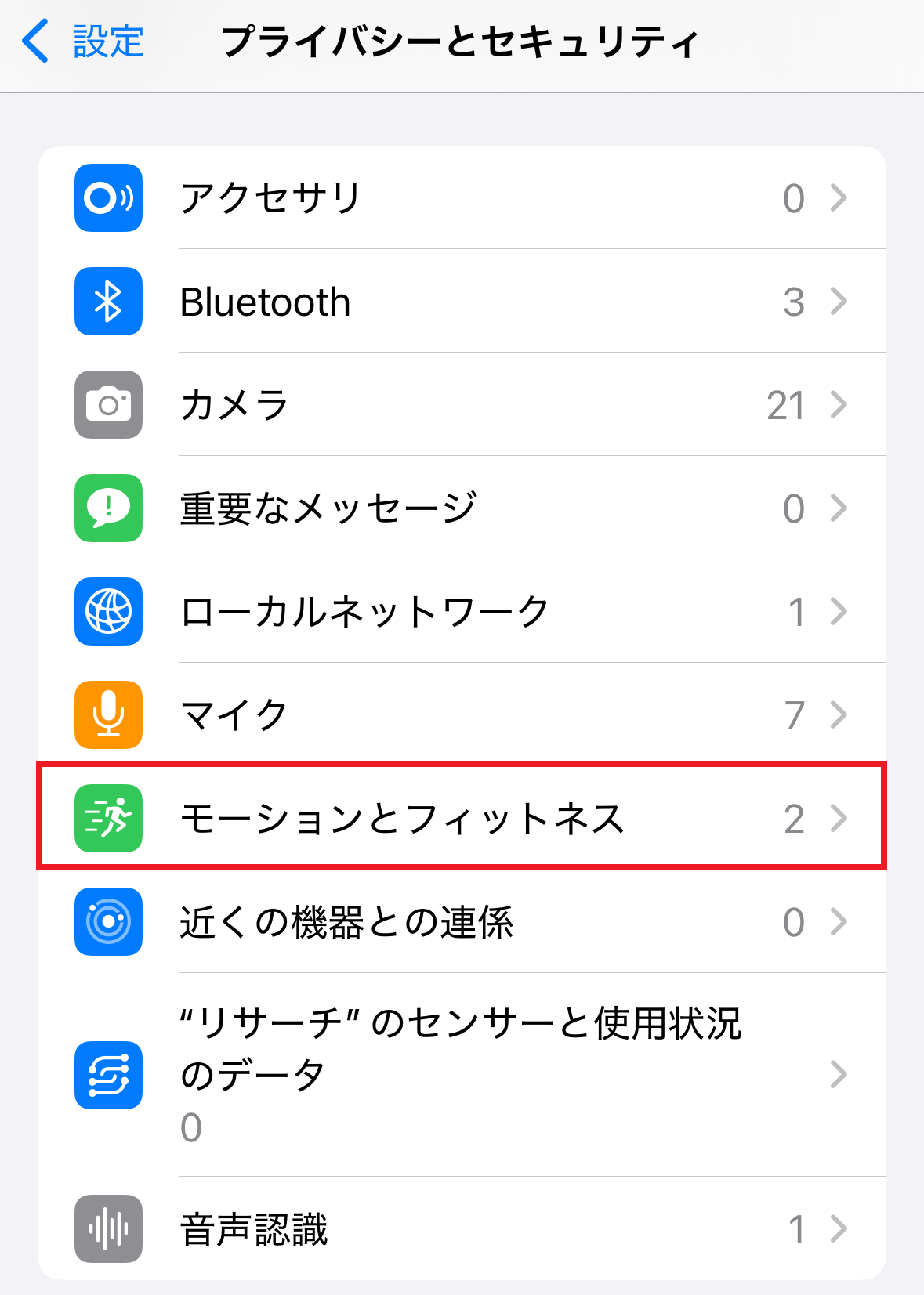 設定>プライバシーとセキュリティ>モーションとフィットネスを開きます。